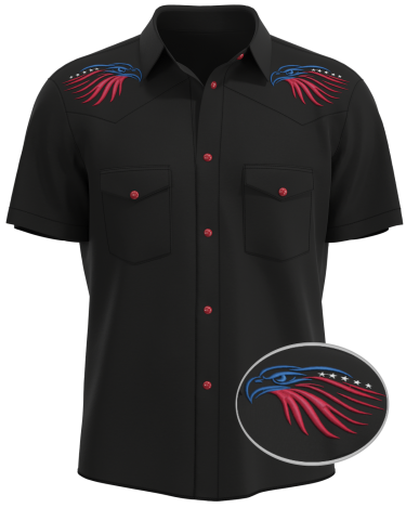 -- USA Eagle Tattoo Design embroidered on the right and left yokes